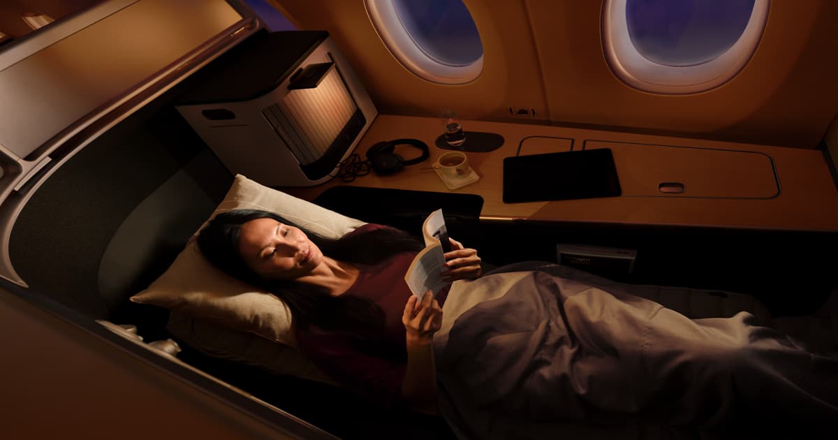 The Business Class cabin has 45 seats, all with direct aisle access and reclinable into a lie-flat bed up to 2.2 meters long.