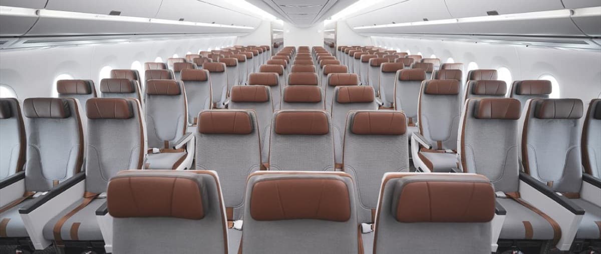 Economy Class seats have an S-shape and ultra-thin seatbacks to increase leg room.